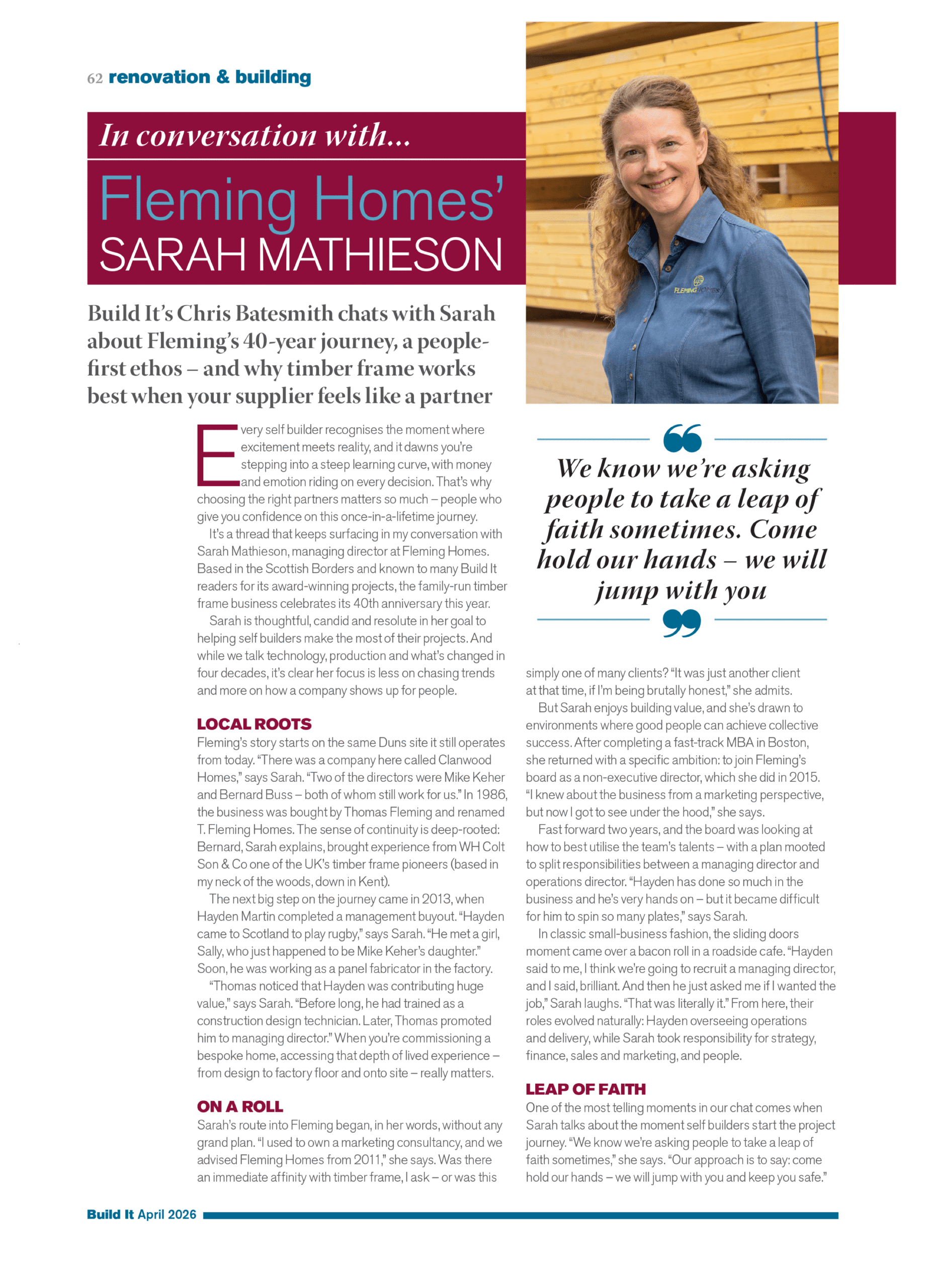 Build It’s Chris Batesmith chats with Sarah about Fleming’s 40-year journey, a people-first ethos — and why timber frame works best when your supplier feels like a partner.